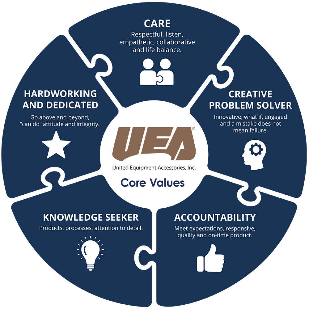 At American Reels / United Equipment Accessories, our culture is deeply rooted in our core values. We hire, fire, reward, and retain employees based on how well they embody these principles at the heart of our organization.